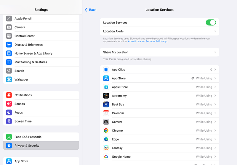 - Location Services: Go to Settings > Privacy & Security > Location Services. You can choose which apps can access location data and set this to “While Using the App” for added security.