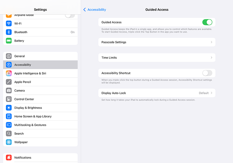 - Turn on Guided Access: Go to Settings > Accessibility > Guided Access and enable it.