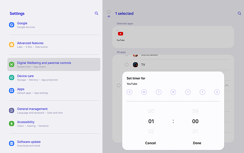 - Set Screen Time Limits: Use App Timers to limit daily time on specific apps, like games or streaming services.
