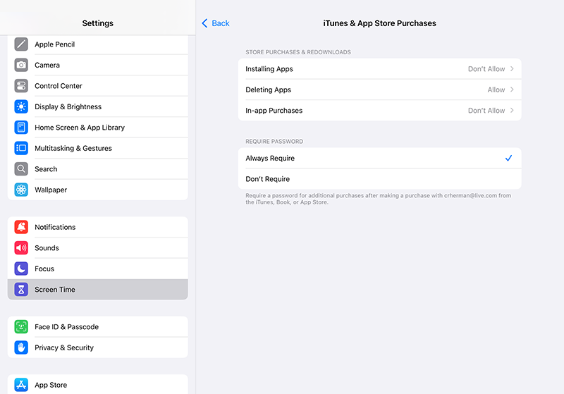 - Limit Purchases: Go to Settings > Screen Time > Content & Privacy Restrictions > iTunes & App Store Purchases. You can require a password for all purchases and even block in-app purchases entirely.