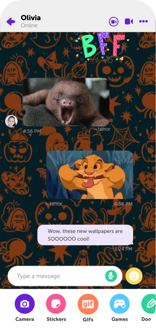 Kinzoo Messenger is designed from the ground up for kids and their families. Our user base is active, engaged—and eager to explore the best of the digital world with the people who matter most. Kinzoo curates everything that appears in-app, ensuring that content is always high-quality and age-appropriate.